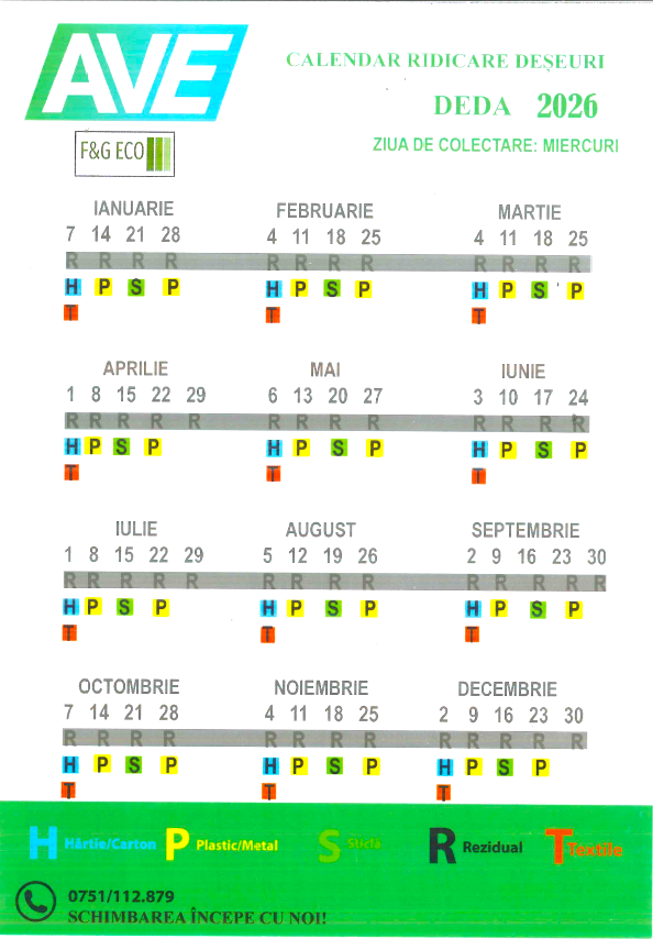 Programul de ridicare a deșeurilor în comuna Deda pentru anul 2026